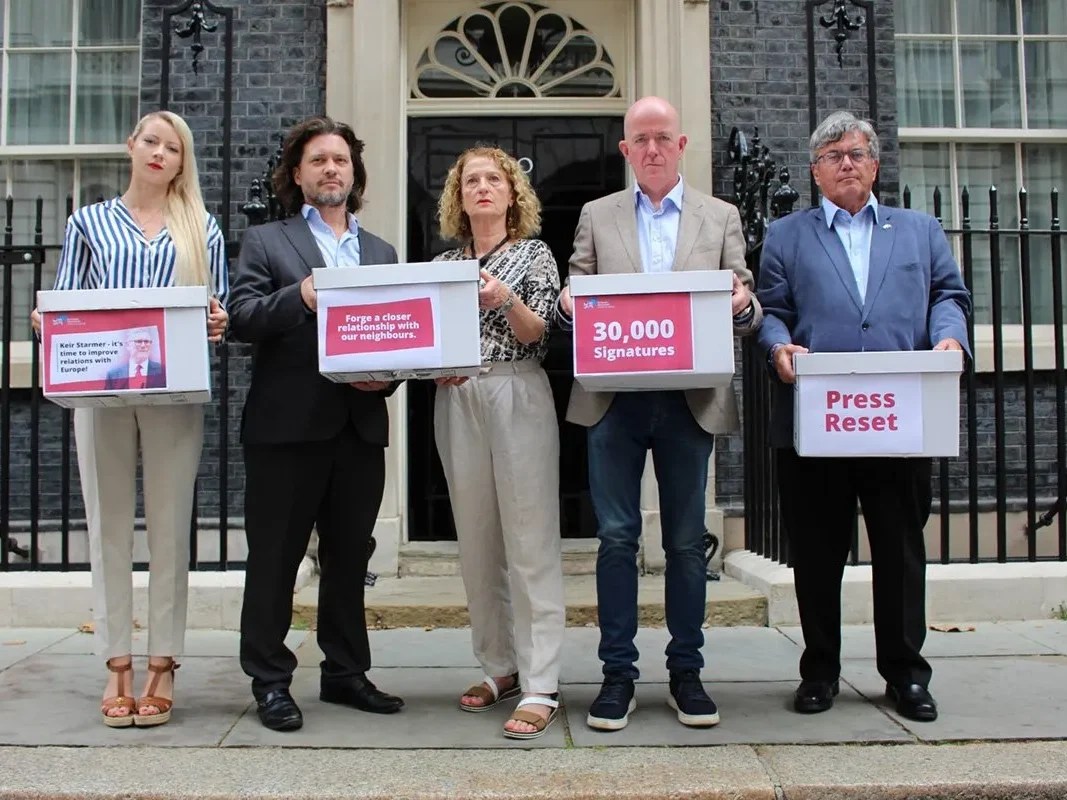 Our President, Cecilia Jastrzembska, joined Mike Galsworthy, Chair of European Movement UK, Barbara Callender, EM National Executive, Dr Charles Grant, Chair of Wales for Europe and David Clarke, Chair of European Movement in Scotland to hand in a petition with 30,000 signatures to emphasise the need for meaningful progress on resetting our relationship with the European Union.
